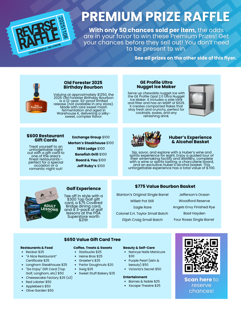 See below for information on our premium raffle and bourbon raffle!
